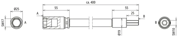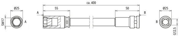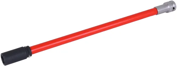 Outil de rallonge en acier inoxydable, douille à ressort magnétique (taille 17), logement carré 1/2 pouce, pour utilisation avec une clé à choc. Avec poignée rouge en rotation libre. Contenu supplémentaire : joint torique et goupille de sécurité.