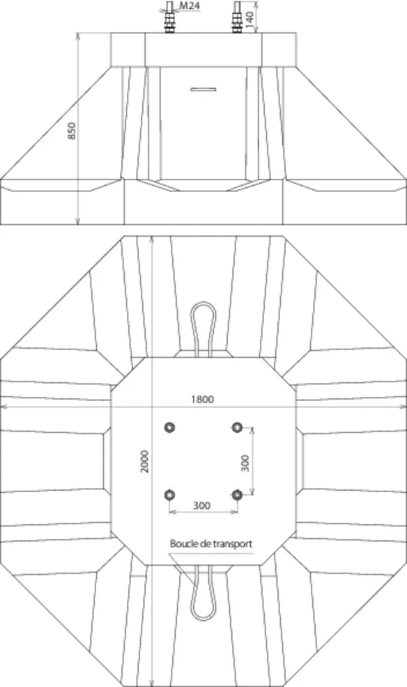 Pour mâts d’une hauteur au-dessus du sol de 13,35 à 19,35 m (références 103 013 / 103 016 / 103 019).
