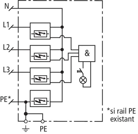 | Courant de foudre (10/350 µs) [N-PE] (Iimp ) | 100 kA |