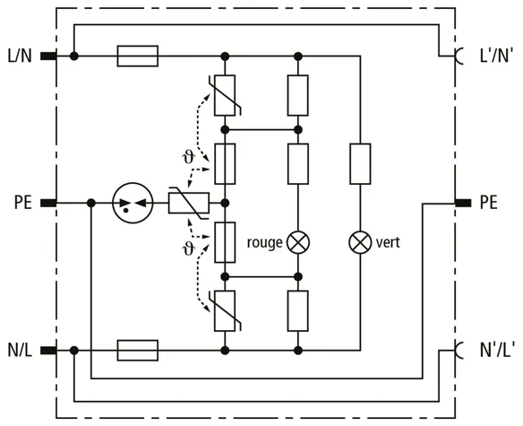 | Courant de décharge total (8/20 µs) [L+N-PE] (Itotal ) | 5 kA |