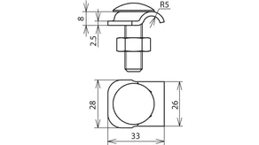 Dispositif de serrage avec trou carré (11 mm) et vis à tête bombée.