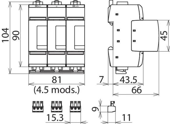 - Parafoudre pour systèmes photovoltaïques jusqu'à 1500 V, comprenant une embase et un module de protection débrochable