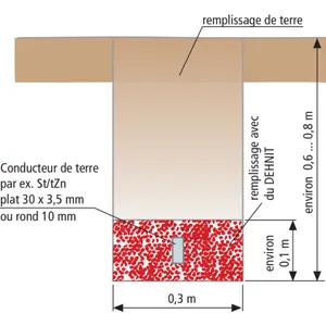 L'argile spéciale à fort potentiel de gonflement et à grande capacité de rétention d’eau constitue une enveloppe pour la prise de terre. Celle-ci favorise ainsi la résistance de terre.