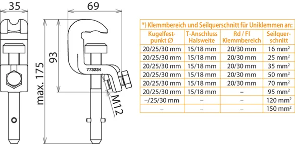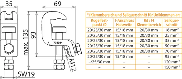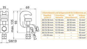 | Pour section de câble Cu | 16 ... 150 mm2 |