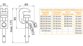 | Pour point fixe à tête sphérique Ø | 20 / 25 mm |