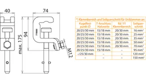 | Pour une largeur des boulons de raccordement T | 15 mm |