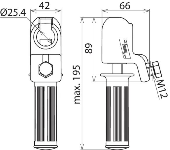 | Pour point fixe à tête sphérique Ø | 25 mm |