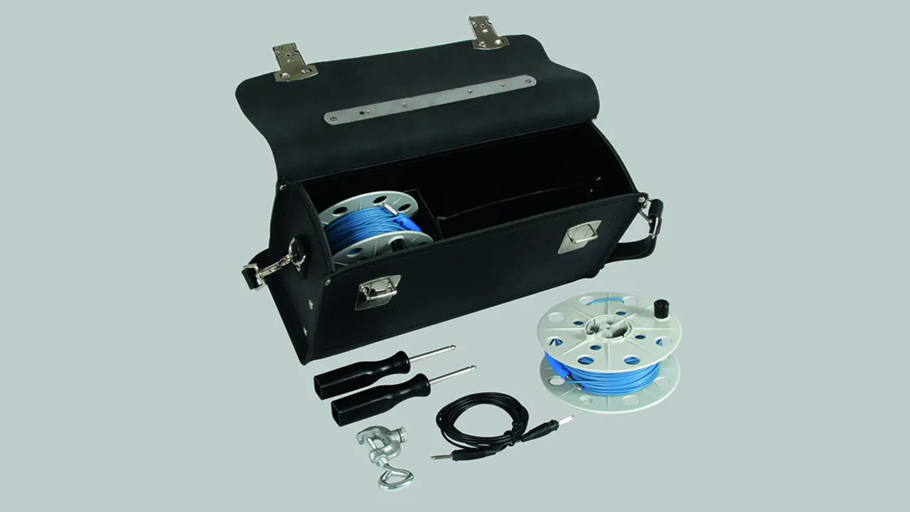 Coffre avec accessoires de mesure pour le testeur de continuité Coffre avec accessoires de mesure pour le testeur de continuité pour le rangement du testeur de continuité et des accessoires de mesure. Équipement du coffre de mesure : 2 dévidoirs de fil avec poignée, 1 câble de mesure 0,75 mm2, 3 m de longueur, 1 borne de test, zone de serrage (zone de serrage 2-21 mm)