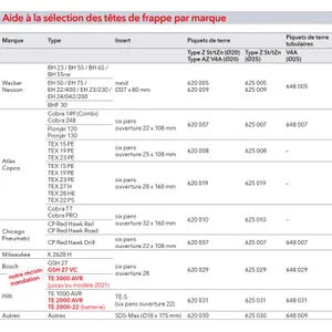 | Remarque: Il est recommandé d'utiliser un marteau avec une force d'impact minimale de 26 joules. La profondeur maximale de pénétration dépend des conditions du sol. | |
