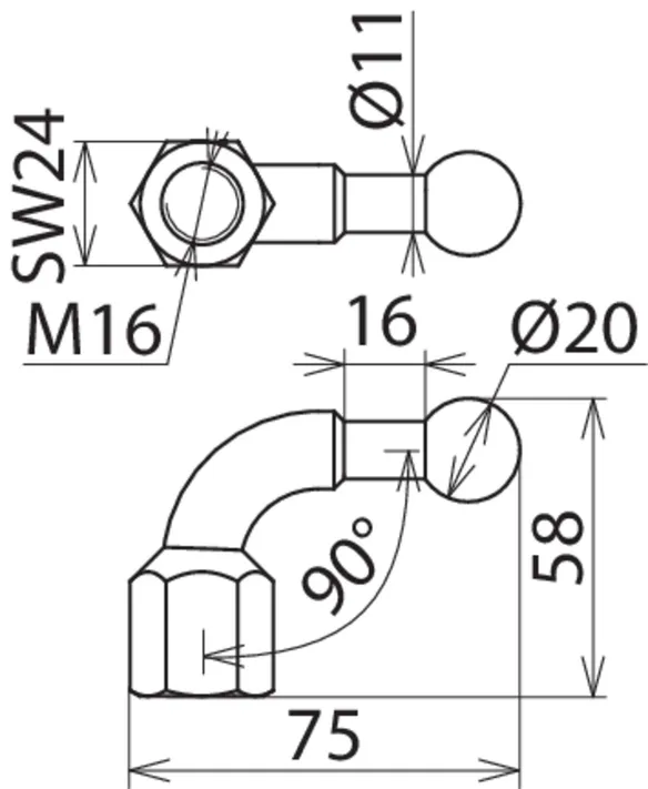 Part No. 707645 KFP 20 W90 M16 45SSM