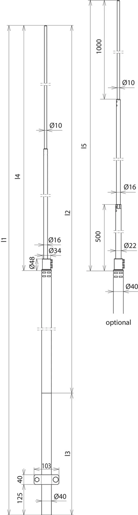 | Lunghezza libera max con asta di captazione (l2) | 5500 mm |