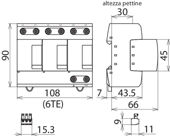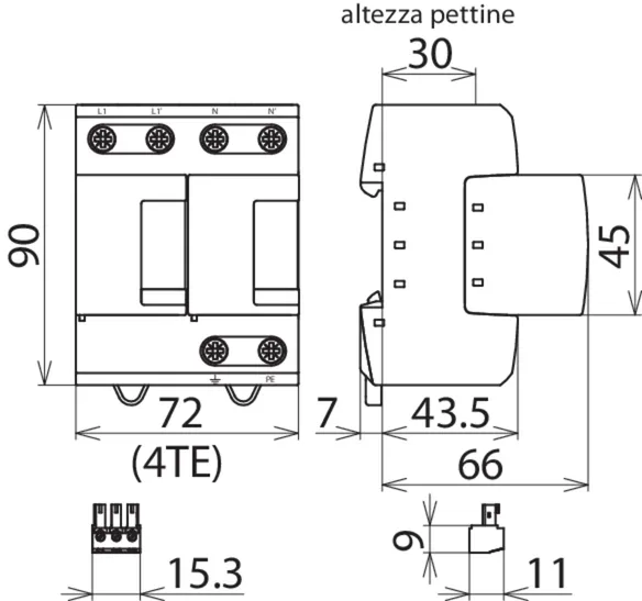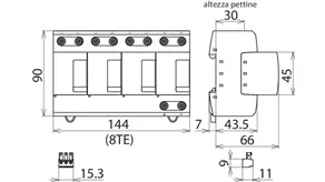 | SPD secondo EN 61673-11 / IEC 61643-11 | Tipo 1 + tipo 2 + tipo 3 / classe I + classe II + classe III |