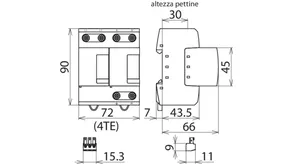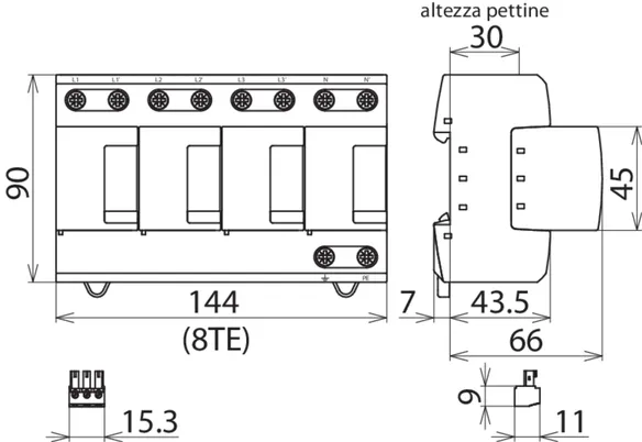 - caricatore combinato spinterometrico precablato Tipo 1 + Tipo 2 + Tipo 3, composto da elemento base e un singolo modulo di protezione innestabile