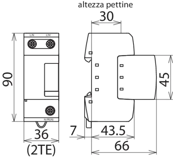 Sezione di collegamento (L/N, L'/N', N/PE(N)) (min.)