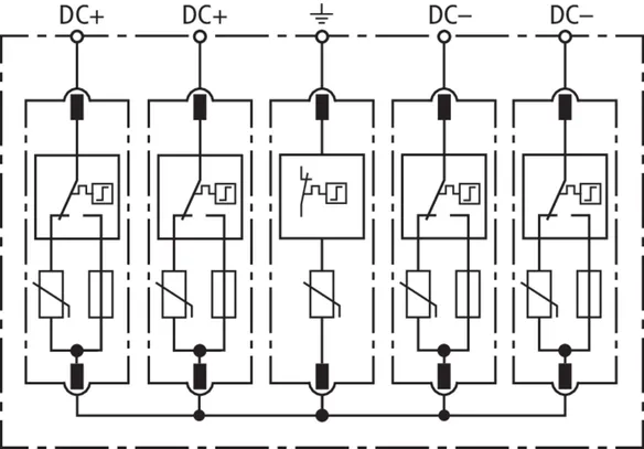 | Corrente impulsiva nominale di scarica (8/20 µs) [(DC+/DC-) --> PE] (In ) | 10 kA |