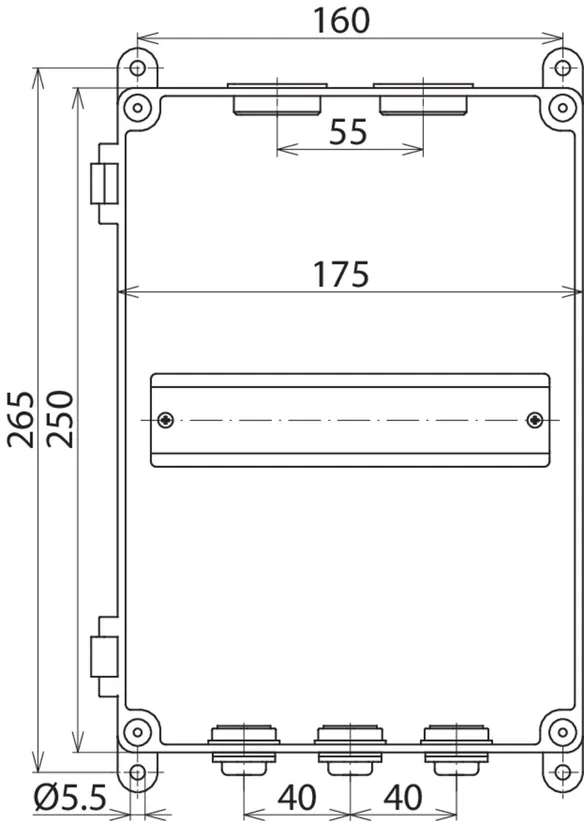 | Numero entrate cavi | 8x per cavo Ø7-12 mm; 8x per cavo Ø7-14 mm; 4x per cavo Ø12-20 mm; 1x per cavo Ø16,5-29 mm (sopra e sotto) |