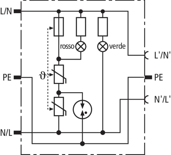 - Protezione da sovratensioni con unità di monitoraggio e dispositivo di sezionamento