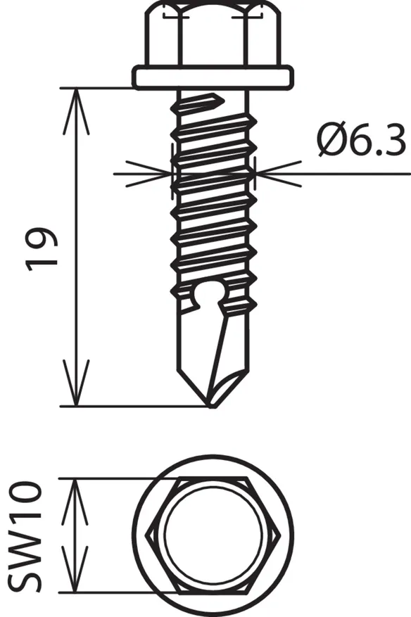 Vite autofilettante INOX Vite autofilettante con testa esagonale e bordino, per il collegamento di corde, trecce di ponticellamento sulle scossaline (con spessore materiale > 2 mm)