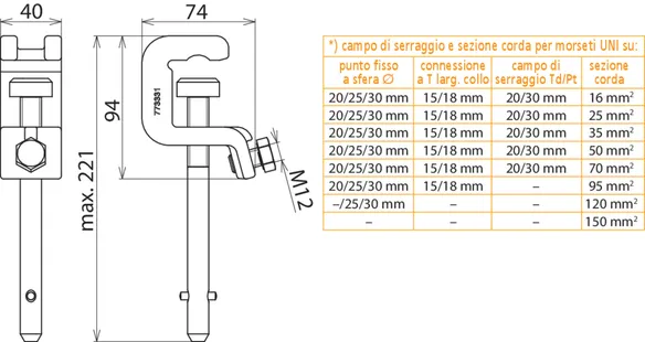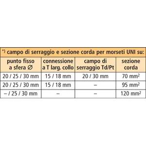 | *) Vedi tabella del campo di serraggio e sezione trasversale massima della corda per pinze universali | |