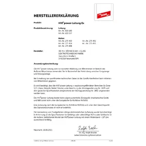Il prodotto conduttura HVI power è idoneo per l'utilizzo in ambienti con pericolo d'esplosione della zona Ex 1 (gas, vapori e miscele) e della zona Ex 21 (polveri combustibili).