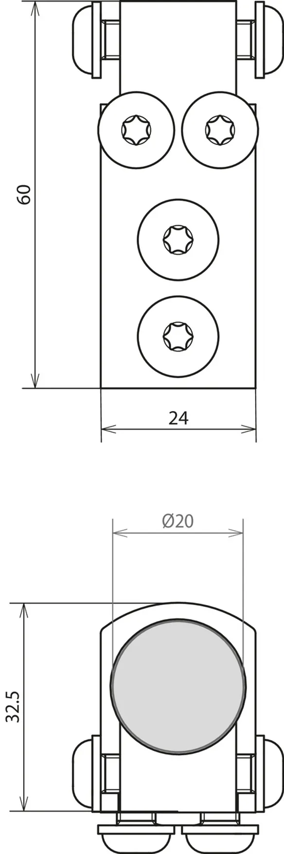 | Viti | 6x M6 x 10 mm lTX30 (4x 2,5 mm2 - max 16 mm2) [2x dispersore / 4x connettore] |