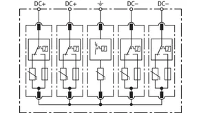 | Corrente impulsiva nominale di scarica (8/20 µs) [(DC+/DC-) --> PE] (In ) | 12,5 kA |